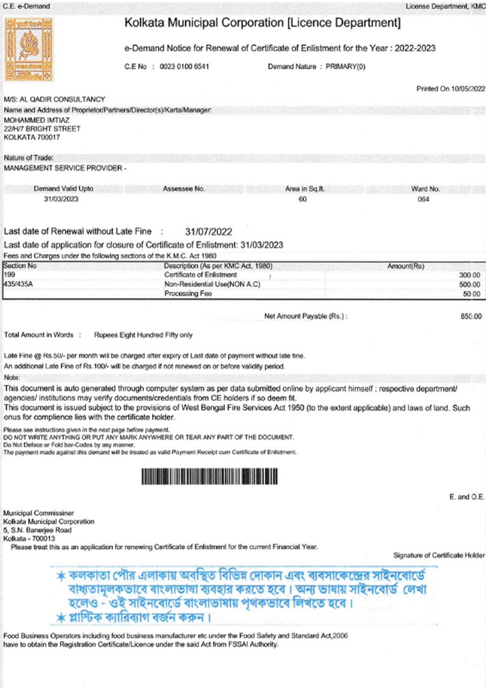 Govt Licence No. UDYAM-WB-10-00-24194 Kolkata India.